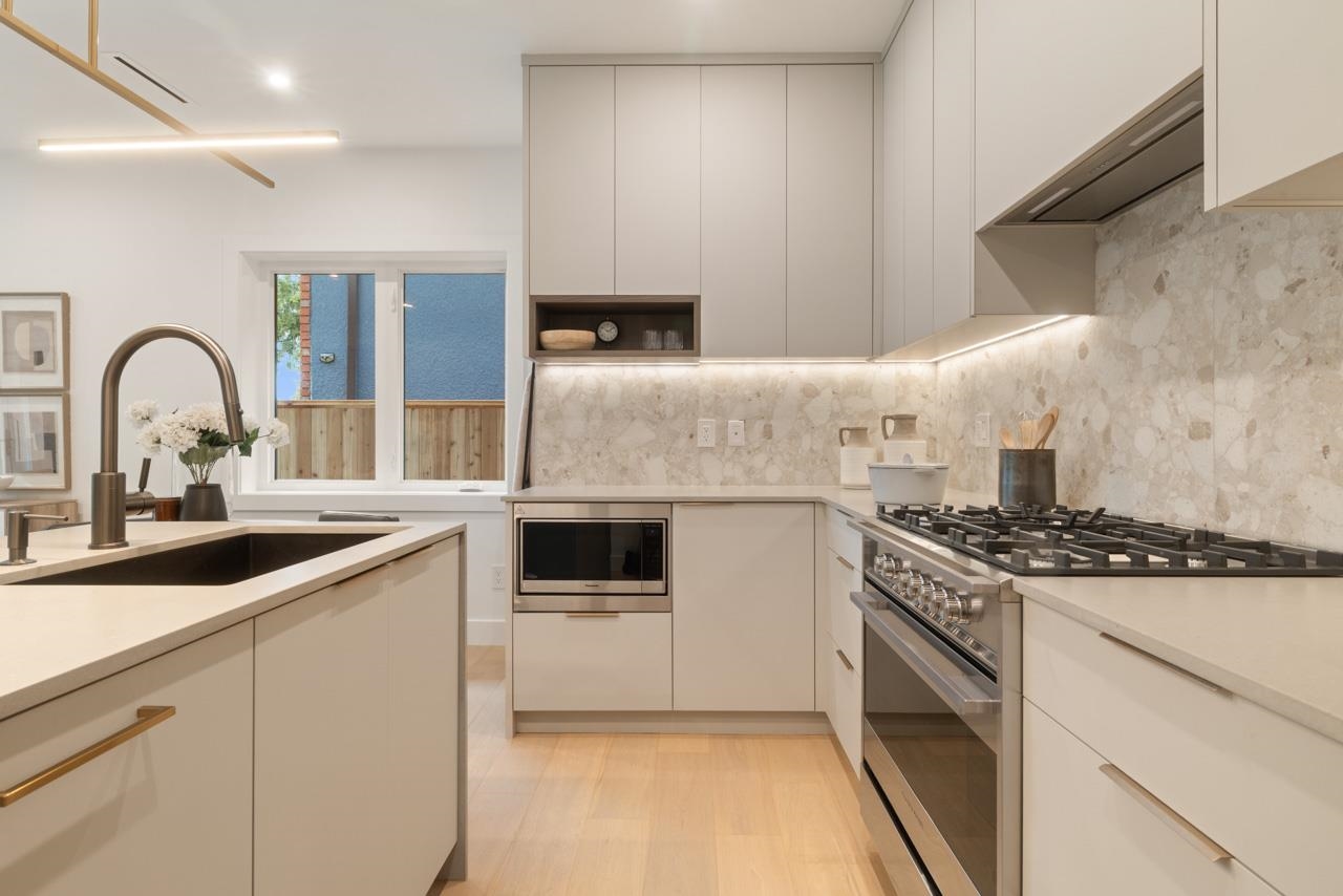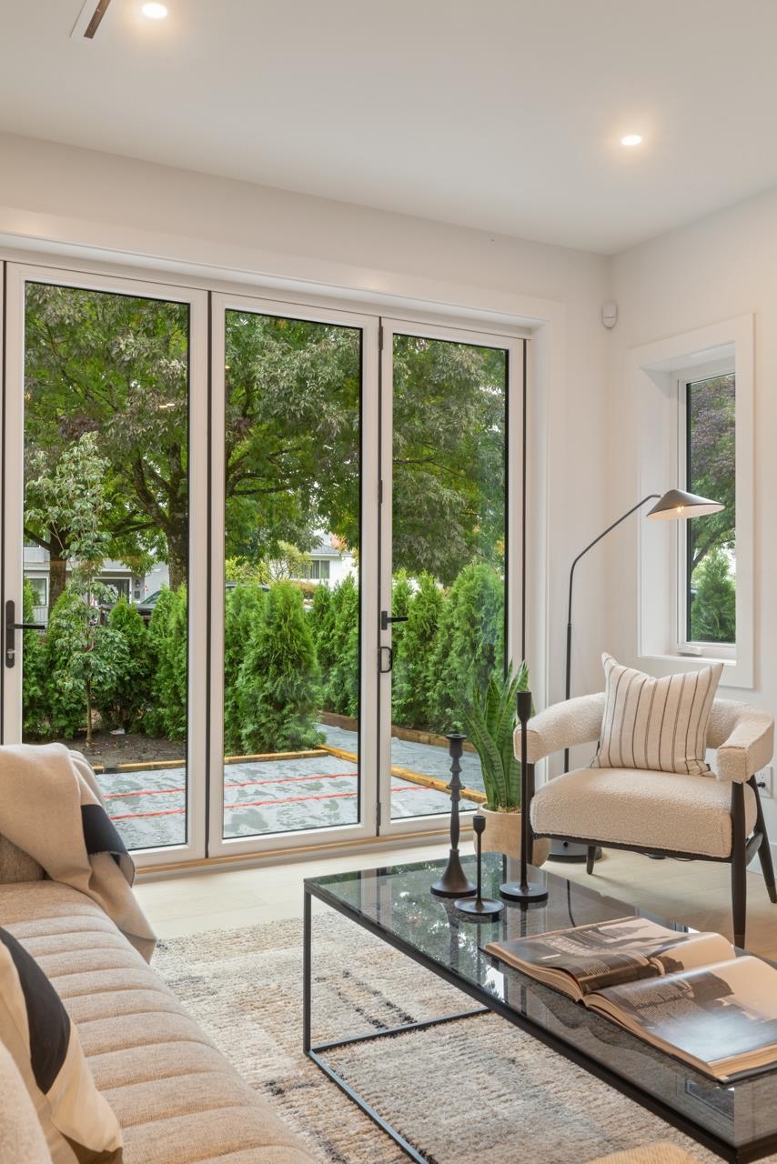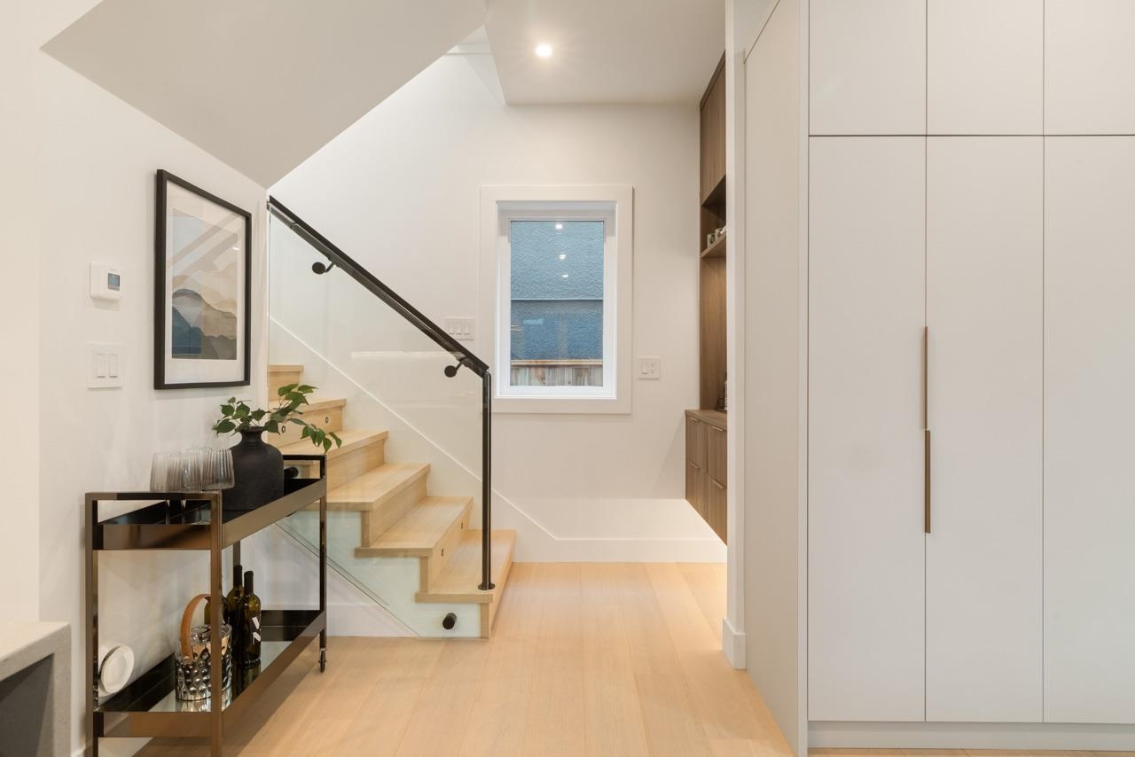 This exceptionally well built and beautifully finished front half duplex offers the perfect blend of style, comfort and function. The open main floor showcases a stunning kitchen with Fisher & Paykel integrated appliances, gas range and large island. Eclipse doors seamlessly connect the living space to a private patio and landscaped front yard. Upstairs features 3 bedrooms and 2 bathrooms, including a serene primary with ensuite. The top floor is a flexible retreat, ideal as a luxe primary suite with spa-like ensuite and covered balcony or perhaps a media room, or home office. Thoughtful details throughout like custom millwork & undersurface lighting. All in a popular East Van location close to schools, parks, and transit. Your opportunity to own Renfrew’s nicest front duplex!