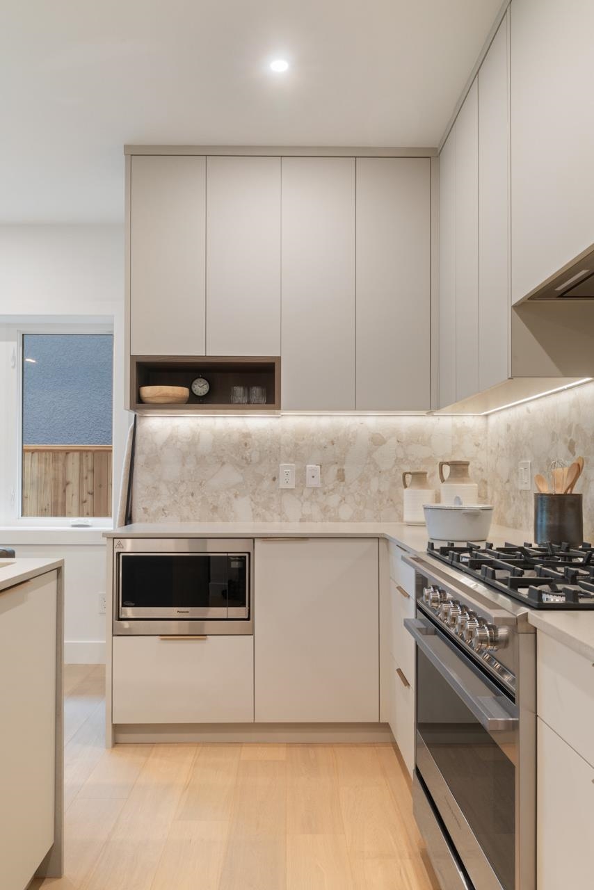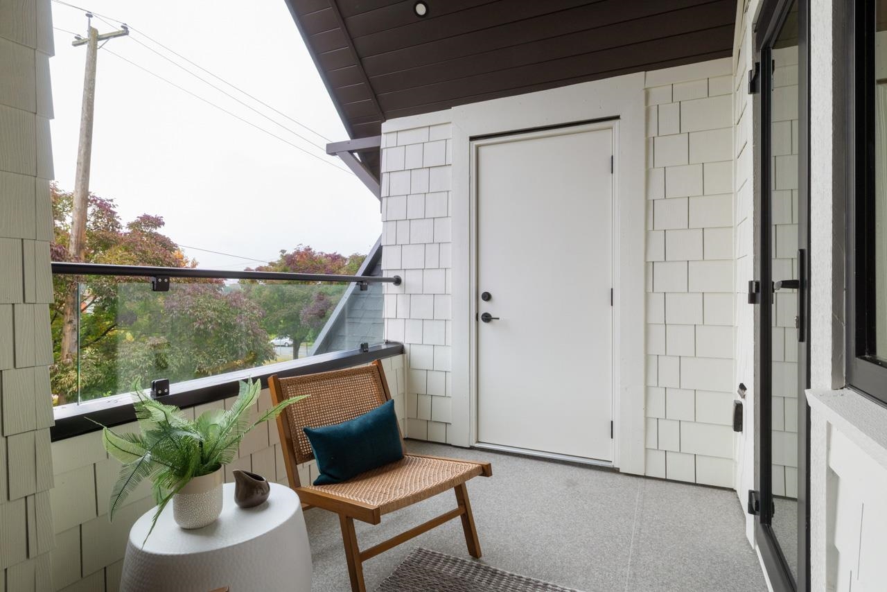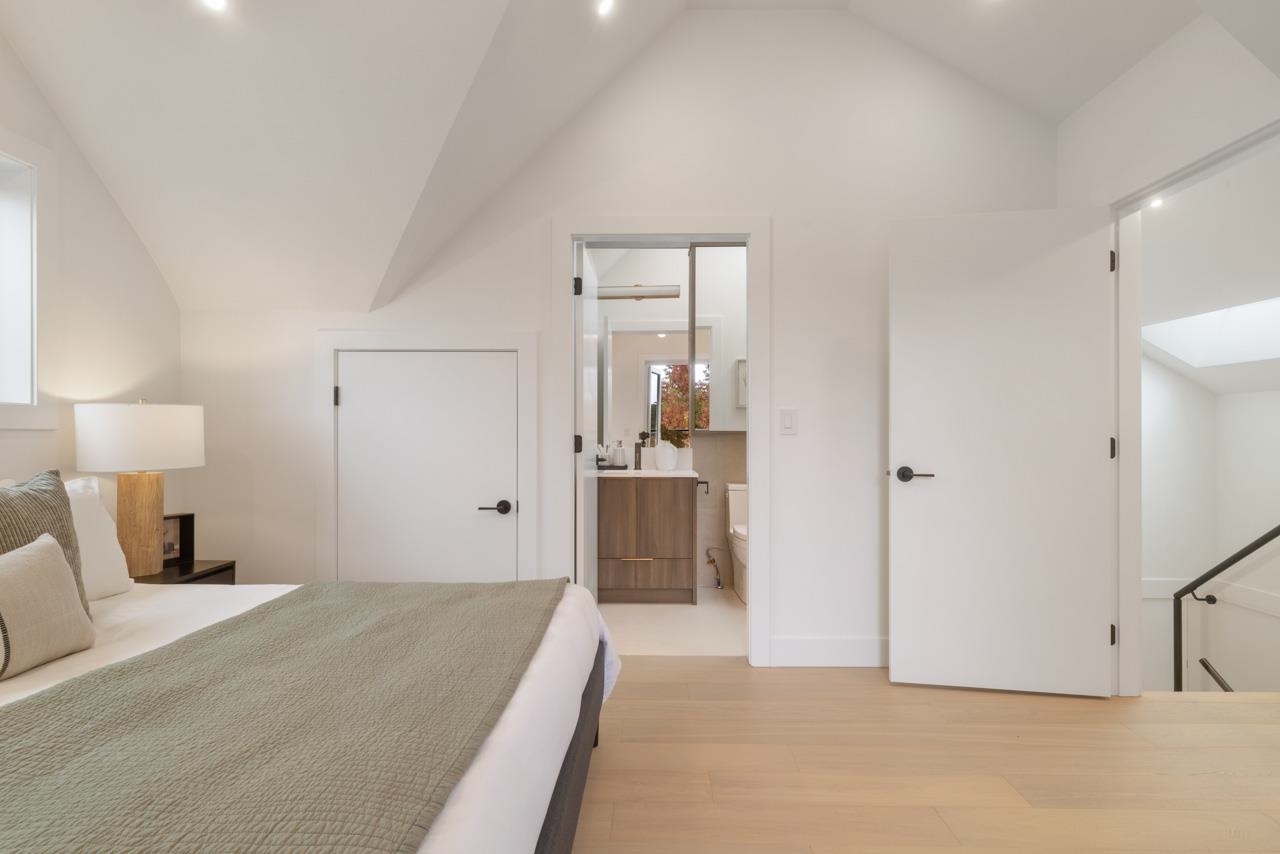 This exceptionally well built and beautifully finished front half duplex offers the perfect blend of style, comfort and function. The open main floor showcases a stunning kitchen with Fisher & Paykel integrated appliances, gas range and large island. Eclipse doors seamlessly connect the living space to a private patio and landscaped front yard. Upstairs features 3 bedrooms and 2 bathrooms, including a serene primary with ensuite. The top floor is a flexible retreat, ideal as a luxe primary suite with spa-like ensuite and covered balcony or perhaps a media room, or home office. Thoughtful details throughout like custom millwork & undersurface lighting. All in a popular East Van location close to schools, parks, and transit. Your opportunity to own Renfrew’s nicest front duplex!
