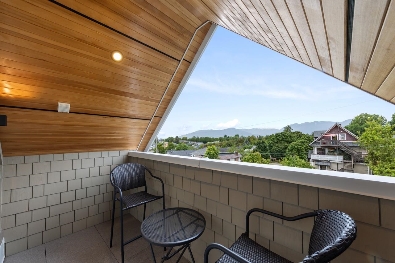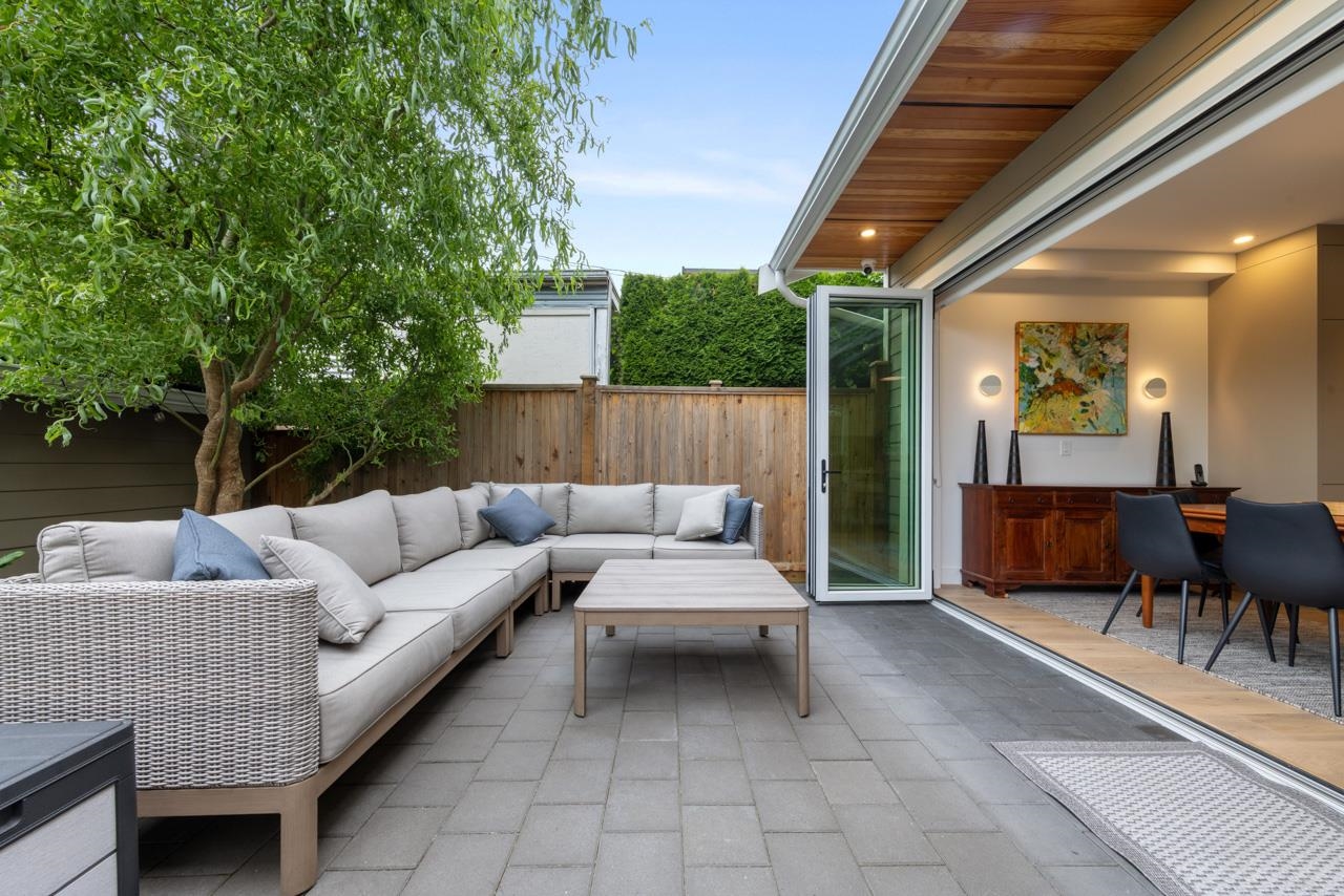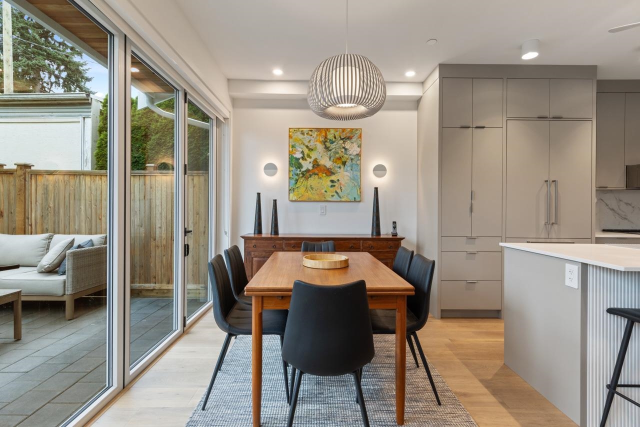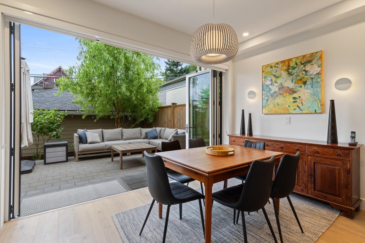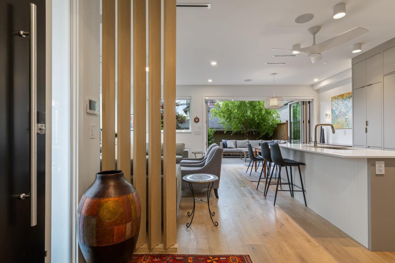 Perched up off the street on a private corner lot, this stunning home lives like a detached house. The main floor has a bright, open plan featuring a living area w/ custom built-ins, stylish powder room w/ Bocci lighting, impressive chef’s kitchen w/ induction range, large island with bar seating and integrated fridge/dishwasher & dining area offering seamless indoor-outdoor flow via 12’ accordion doors to lush the garden & patio. Upstairs has 2 bedrooms incl the stunning primary retreat w/ ample closet space & dreamy ensuite. The top floor bedroom offers a covered balcony, 3pc ensuite & panoramic views. Sophisticated interiors include white oak floors, radiant heat, A/C, Nest system, in-ceiling speakers and custom millwork. Includes a single car garage + bonus secure parking pad. Wow!