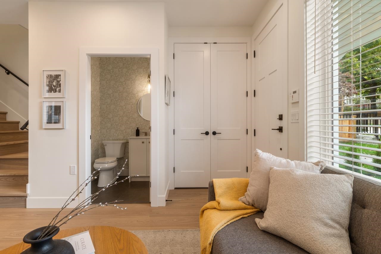 Introducing LAKEWOOD COURT by Alaris Developments! A rare boutique collection of 4 homes on a prime block in the Commercial Drive community. Step into this front residence featuring an open main floor with high ceilings, big windows comfortable living space and a stylish powder room. You will be wowed by the dazzling kitchen with integrated SMEG appliances, gas range, beautiful slim-shaker cabinetry & room for your dining table. Upstairs are 2 generous bedrooms, each with its own ensuite bathroom. This unique home comes with radiant in-floor heat, A/C, crawlspace storage, 1 parking and a private South facing front yard. Steps to cafés, shops, parks & schools, Lakewood Court blends modern living with a vibrant East Van lifestyle.