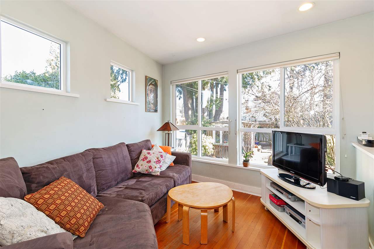 This delightful character home features a Family Room addition, & lots of upgrades during the renovation of 1997! Leaded glass doors on the Living Room built-ins, fir floors & a cozy gas fireplace maintain the feel of the past. The modern addition created a nice open plan for the Kitchen, Dining & Family Room, all overlooking a huge back yard. Expanded Main Bath with soaker tub, large vanity, & ceramic-tiled splashes & surrounds. 1 Bedroom on Main. 2 Bedrooms Up including an opening skylight in the Master, & a small balcony off the 2nd BR. Inside or outside access to the good height Basement. The Owners enjoy the Mud Room off the back, lots of Storage & a big Workshop / Laundry. New furnace & updated mechanicals. A nice 1 BR suite with separate entry is awaiting your choice of tenant.