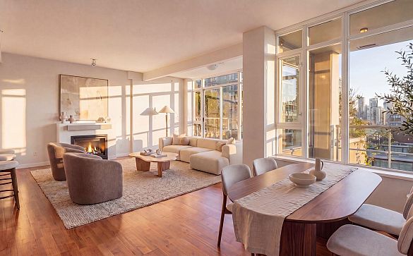 Sub-Penthouse on Smithe St, Yaletown besides the ocean! This well designed corner unit boasts 9 ft. ceilings w/floor to ceiling windows, 2 bedrooms,... Read More >