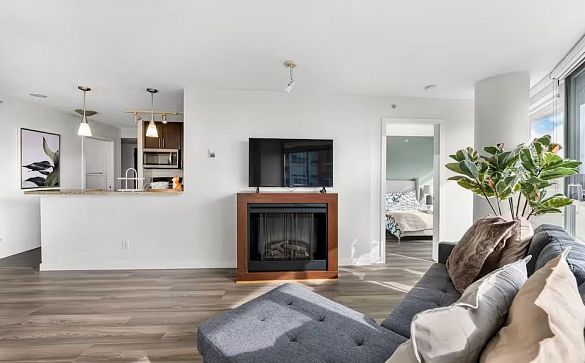 Bright 2 bed, 1 bath home at 33 Smithe St w/ smart layout and expansive windows that bring in natural light and city outlooks. Open living/dining... Read More >