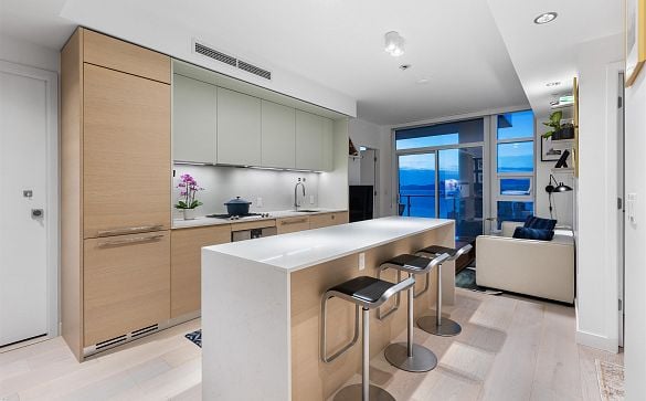 ALVAR on Beach Avenue. VIEW of English Bay waterfront and mountain One-bedroom plus den; corner suite. Bright and spacious, features a bonus flex... Read More >