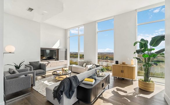 Modern 1 Bed + Flex, 1 Bath East-facing home at MODE in the River District. Enjoy river and mountain views, 9' ceilings, and a high-efficiency... Read More >