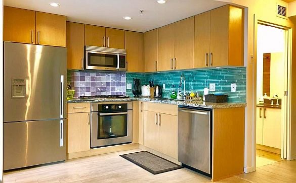 Chic corner unit, water view, steps from Seawall. 2 beds, 1 bath. Bright SE living/dining, floor-to-ceiling windows. Designer show home, seamless... Read More >