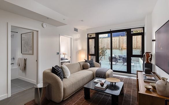 This beautifully designed 1-bedroom + den ground-level home offers a smart, functional layout and an exceptional 414 sq ft private walkout patio for... Read More >