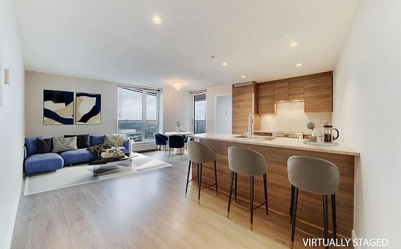 Welcome to Marine Gateway! This bright N+E facing corner 1 bed and bath home offers spectacular mountain view and a large balcony. The modern kitchen... Read More >