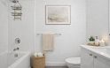 The Windsor. Rare 3 bedroom home in a concrete 6-storey building with only 14 units offering exceptional privacy. This bright corner residence is one of just four homes on the floor and offers nearly 1,000 sqft of efficient interior living space with a spacious open kitchen, dining and living area ideal for entertaining. Enjoy mountain views and a generous 231 sqft balcony—an ideal extension of living space. The modern kitchen features Bosch appliances, sleek cabinetry and ample prep space. Year-round comfort with heating and cooling. Amenities include a landscaped rooftop courtyard with BBQ area, fitness centre and residents’ lounge. Steps to shops, cafés, parks and SkyTrain. Includes 2 parking stalls and remaining new home warranty.