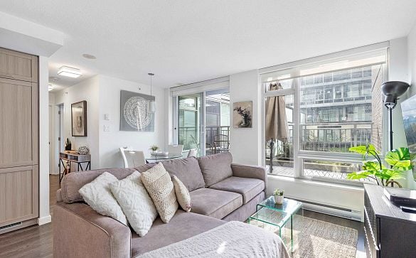 Large 1 bedroom + den with great floor plan on a quiet side of Wall Centre with garden view. Very livable unit. Custom California closets installed... Read More >