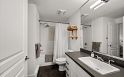 Experience the pinnacle of urban serenity in this rare top floor sanctuary at the renowned Century by Ledingham McAllister. Perfectly situated on the quiet side of the building with no one above you, this sprawling 1 bed + den home boasts soaring 10' ceilings, peaking at an impressive 11' in the living area with extra windows for maximum light. Many bespoke upgrades sets this home apart, including 9" waterproof oak UltraWood flooring, custom wainscoting in the den, and designer LED lighting throughout. The open-concept kitchen features quartz counters and SS appliances, flowing into a bright living space and a private balcony with unobstructed mountain views. Located in the vibrant Fraserhood, steps from top-tier dining, transit, and essentials. Pet friendly with secured parking & storage.