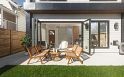 Back unit in a front/back duplex on a quiet, tree-lined street in Hastings Sunrise. South-facing with abundant natural light + private full size backyard. 1,580 sq ft, 3 full size beds each with ensuite + powder room. Kenzi Design Studio: custom lighting, millwork, tile, transitional palette. Black-framed windows at max allowable + 6’ stair glazing bring light throughout. Third bed full height (no slope). Accordion doors extend living to a sun-filled yard. Radiant heat + heat pump/AC, automated blinds, built-in speakers, security, gas BBQ hookup. Kitchen w/ island + window over sink. Full-size insulated epoxy garage - office/gym/storage. Close to Commercial Drive, Hastings restaurants, Downtown, North Shore. Hastings Elem / Templeton Sec. PNE summers.