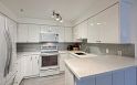 Roof top deck with PANORAMIC WATER & MOUNTAIN VIEWS of the Golden Mile and more! Stylishly renovated 690 sq.ft. 1 bed/1 bath plus open den plus solarium home at the well-maintained, rain-screened Pacific Landing. Thoughtfully laid out with bright, open living area and an entertainer-friendly kitchen featuring quartz countertops, newer appliances, and a generous eating bar. East-facing windows bring in soft morning light and overlook mature trees for a peaceful outlook. The open den offers an ideal work-from-home setup, while the solarium adds flexible living space. Spacious bedroom with walk-in closet and cheater four-piece bath. In-suite laundry and excellent storage complete the home. Enjoy BBQs and breathtaking views from the shared rooftop deck.