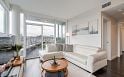 Podium-level corner 2bed/2bath + den unit at Central w/ an abundance of natural light & expansive east & south views, A/C & large patio ideal for entertaining. Unit backs onto rooftop terrace common area, extending your outdoor space. Spacious layout fits full-size dining table, 4 stools at island, large primary (dbl sinks, walk-in shower), 2nd bath newly reno’d. Custom in-suite storage (den). High-end finishings incl. JennAir appls, gas cooktop, wrap-around windows, beautiful flooring. Building offers 7,000 sqft wellness centre: gym, yoga, party/theatre/dining rooms w/ pro kitchen, steam/sauna, rooftop garden. Steps to Olympic Village shops, SkyTrain, & Seawall. 1 pkg, 1 locker, 1 bike locker.