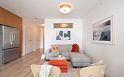 The District! Modern, bright and airy suite designed open-concept layout. Contemporary kitchen with full-size stainless steel appliances, sleek stone countertops, matching backsplash, and generous cabinetry. Hardwood flooring, spa-inspired bathroom with a deep soaker tub, in-suite laundry, and excellent storage options. This solidly built, mid-rise concrete building is well run and professionally managed. Outstanding amenities, including expansive ROOFTOP terraces with sweeping views, cozy outdoor fireplaces, garden, BBQ stations, outdoor eating tables and plenty of lounge space. Fitness center, artist room, meeting room, secure bike storage. Convenient underground parking spot with large, secure storage locker. 1 dog or 1 cat. Urban life at its best. Short term Airbnb is allowed!