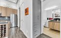 Rare concrete townhome featuring a private entrance and soaring 14 ft ceilings!. Located at Proximity by Bastion, this 1-bed + den residence offers a unique sense of space and direct access. The interior is appointed with Laminate flooring, Custom California Closets, and a gourmet kitchen featuring Caesarstone counters and full-size Fisher Paykel/Bosch appliances and a gas range. Extend your living space on the spacious 108 sq.ft. private patio surrounded in greenery. Situated next to Olympic Village, you are steps from the Seawall, Canada Line, and top-tier dining. Building amenities include a rooftop deck, lounge, and garden plots. Complete with 1 parking and 2 storage lockers. Pets and rentals allowed.