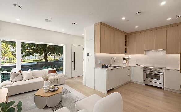 Nestled in Mount Pleasant’s coveted Cedar Cottage neighborhood, this newer Medallion Homes duplex dazzles with 4 bedrooms (3 on one level), 4... Read More >