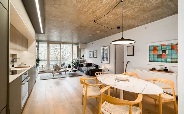 Over 900 sq. ft. of thoughtfully designed space featuring white oak flooring, polished concrete ceilings + floor-to-ceiling windows. The kitchen... Read More >