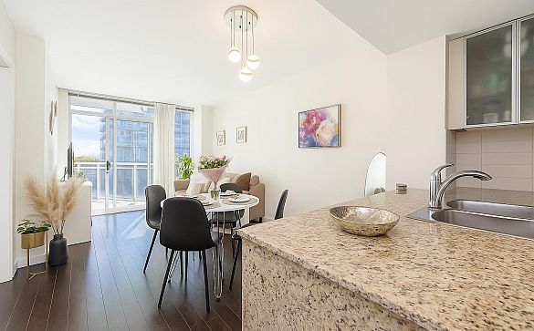 This gorgeous, bright & air-conditioned 2 bedroom + den residence has totally open city views from the 11th floor from the Kensington Gardens... Read More >