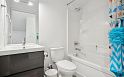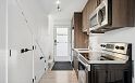 This 586sf, 2 levels, 2 bedrooms, 1 bathroom laneway house has plenty of sunshine with open southern exposure. The foyer, kitchen and living room has light fir laminate floors. The kitchen has one row of veneer cabinets, engineered stone countertops, ceiling track lights, stainless steel appliances and a rectangular under-mount steel sink. Under the staircase are two storage spaces and the laundry set. The living room has a huge window and ceiling track lights. The 2nd bedroom on this floor also has a large window. Upstairs is the primary bedroom with a balcony and 4 pcs ensuite bathroom featuring a soaker tub w/ shower and a sleek vanity with a bold rectangle one piece sink counter. Rent includes electricity. The owners are a local family who lives in the main house.