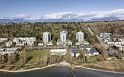 Impressive lobby leads to rich dark hardwood floors & a curved foyer opening to bright dining and spacious living areas with a brick-style mantle and electric fireplace. Floor-to-ceiling windows capture stunning southwest Fraser River views, with two corner sliding doors to a covered deck for sunsets and outdoor living. Kitchen features butcher block counters, stainless steel appliances and white cabinetry. Second balcony off the kitchen and bedroom overlooks the treed Fraserview Golf Course. Large primary with walk-in closet and spa-like ensuite with soaker tub and glass shower. Updated main bath. Amenities include indoor pool, hot tub, gym and multipurpose room. 3 side-by-side parking + locker. 2 pets allowed. Steps to riverfront park and 15-minute walk to River District shops and cafes.