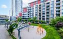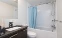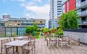 Seldom available inside CORNER SUITE at the vibrant River District Village. This AIR-CONDTIONED spacious 2-bedroom + den, 2 bath home features 8'-5" ceilings for the bright & airy feeling with a direct view to the quiet inner courtyard, laminated floorings, large covered balcony. The chef inspired kitchen boasts quartz countertops & tiled backsplash, high-end Jenn-Air stainless steel appliances with gas cooktop. Primary bedroom features a large walk-in-closet and a 3 piece ensuite with in-floor radiant heating. The second bedroom is non-adjoining for maximum privacy. Enjoy exclusive access to Club Central, a 14,000sf amenity center with indoor pool, hot tub, sauna, steam room, a fully equipped gym, indoor basketball & squash courts plus multiple social lounges, kids' playroom and more.