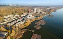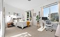 Experience the perfect blend of nature, urban living and luxury in the vibrant River District. This beautiful and spacious TOP FLOOR 2 bedroom condo boasts VAULTED CEILINGS and open concept living plan that seamlessly connects spacious dining/ living areas. The chef's kitchen is equipped with quartz counter tops, breakfast bar, gas range, designer appliances, & cabinets. Large primary bedroom features a walk in closet, spa- inspired ensuite, double vanity, soaker tub & separate shower. Den has been converted into multi- functional closet for extra storage. Step outside your covered balcony to enjoy morning coffee & outdoor entertaining all year round. Bonus 2 side by side parking & extra storage locker for convenience. Steps away from trails, shops, eateries- truly the perfect lifestyle.