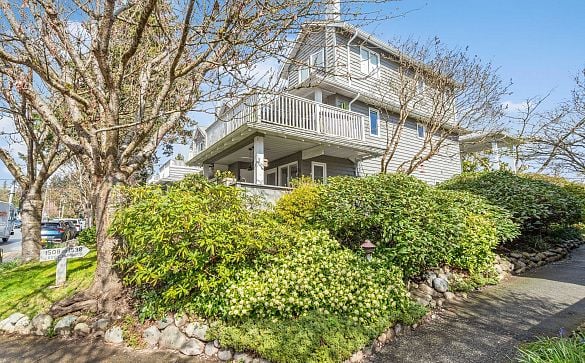 Nestled above the coastline in Deep Cove, this custom home is set within beautifully established English gardens, framed by ocean & mountain views... Read More >
