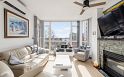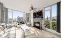Totally renovated southwest corner unit offering 749 sq.ft. of bright living with stunning city, harbour, and mountain views from every room. Upgraded in 2021 & 2025 with two heat pump heating and cooling systems, new flooring, lighting, granite countertops, and appliances. Features 9 ft ceilings and floor-to-ceiling windows, plus a spacious living/dining area with gas fireplace. Kitchen includes a generous eating area. Large bedroom with ample closet space. Private deck overlooks beautifully landscaped gardens, gazebo, and park across the street. Amenities include gym, jacuzzi, sauna, guest suites, and secure parking. Steps to Lonsdale Quay, SeaBus, shops, and restaurants.
