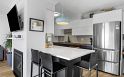 Top floor, south facing corner unit in Central Lonsdale! This gorgeously renovated 2BR/1BA condo has extensive updates. In the kitchen, recent appliances with induction stove plus all new cabinets, wood and stone countertops extended to an eating area. The large, bright living/dining area features durable wide plank vinyl floors, plus an updated gas fireplace and looks out to a huge and sunny wrap around balcony that overlooks the treed street. Beautifully tiled bathroom has an updated shower with inset nooks for storage. Recent closet doors, light fixtures. The well-run building has many upgrades including balconies, windows, sliding doors, electrical, plumbing. Steps away from all Central Lonsdale shops, medical, new Harry Jerome and minutes to the highway. 1 pkg, 1 stg, dog or cat ok.