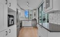 Welcome to this bright corner unit in sought-after Central Lonsdale, offering more than 1,000 sq/ft of comfortable living with 2 bedrooms and 2 bathrooms. Enjoy 9-foot ceilings, large windows, and wide-plank flooring that enhance the airy feel throughout the home. The open living and dining space is flooded with natural light and features a gas fireplace, making it ideal for both relaxing and entertaining. The kitchen includes stainless steel appliances, quartz counters, a pantry, and access to a covered balcony perfect for all-season BBQs. Two spacious bedrooms enjoy mountain views, including a primary bedroom with a spa-style 5-piece ensuite complete with a frameless glass shower, soaker tub, and double sinks. This well-kept concrete building includes secure parking and a storage locker