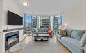 Welcome to this bright corner unit in sought-after Central Lonsdale, offering more than 1,000 sq/ft of comfortable living with 2 bedrooms and 2 bathrooms. Enjoy 9-foot ceilings, large windows, and wide-plank flooring that enhance the airy feel throughout the home. The open living and dining space is flooded with natural light and features a gas fireplace, making it ideal for both relaxing and entertaining. The kitchen includes stainless steel appliances, quartz counters, a pantry, and access to a covered balcony perfect for all-season BBQs. Two spacious bedrooms enjoy mountain views, including a primary bedroom with a spa-style 5-piece ensuite complete with a frameless glass shower, soaker tub, and double sinks. This well-kept concrete building includes secure parking and a storage locker