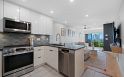 Ocean views & sun soaked rooms. Perched on the top floor of Calypso, this renovated penthouse is at the centre of Lower Lonsdale living. Upon entry your eye is pulled through the open concept layout, taking in the Burrard Inlet and Vancouver's skyline beyond. Clean & contemporary, the new kitchen offers plenty of prep space. Illuminated by one of the propertie's skylights, the secondary bedroom will comfortably accomodate a double bed or make for a great office. With connection to the 5-piece bathroom, the primary suite makes room for a king-sized bed and shares the coveted ocean-city views. Calypso is a well-run, fully rain screened building. 1 storage locker & 1 parking stall are included. Pet friendly. All showings at the open houses: Sat. Jan 31 11am-1pm, Sunday Feb. 1st 11am-1pm.