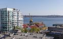 Introducing this TOP FLOOR PENTHOUSE 2 bed + office SE CORNER home with stunning views throughout. A true downsizers dream with 12' CEILINGS and over 1200 sqft in a modern, open-concept layout. Features 2 separated bedrooms, both with ensuites, a spacious walk-in closet in the primary, and views from every room. Enjoy a dedicated laundry nook with storage, large kitchen island with built-in wine fridge, and ample space for living and entertaining. Stay comfortable year-round with AIR CONDITIONING. This penthouse offers radiant hardwood floors, a gourmet kitchen with stainless steel appliances, 5-burner gar range, and quartz countertops. Includes 2 side-by-side parking and a private storage room. Set in a prime location where you are steps to the very best of Lower Lonsdale living!