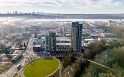 PANORAMIC VIEWS | LUXURY LIVING - Welcome to Hunter at Lynn Creek! This stunning 1 Bedroom home offers breathtaking south/south west facing water, mountain and city views, a spacious 103 sq. ft. covered balcony, and air conditioning for year-round comfort. The sleek open-concept kitchen boasts quartz countertops, modern cabinetry, stainless steel appliances, and a gas stove-perfect for home chefs. Wide plank laminate flooring adds a touch of elegance. Enjoy resort-style amenities; a gym, sauna, steam room, party lounge, BBQ area, kid's p[lay zone, and more! Steps to Seylenn Park, rec centre, shops, pharmacy, nail salon, and transit. 2 pets welcome! 1 Parking & Storage.
