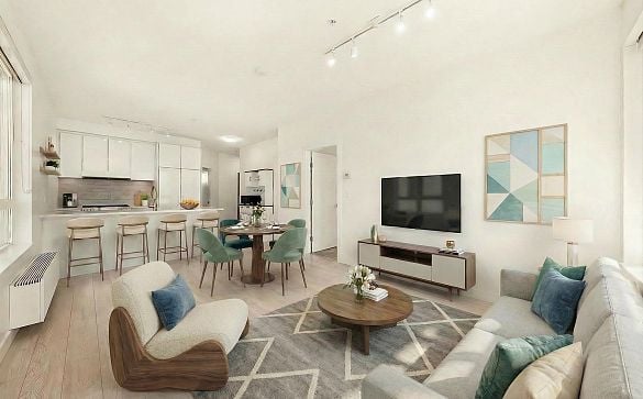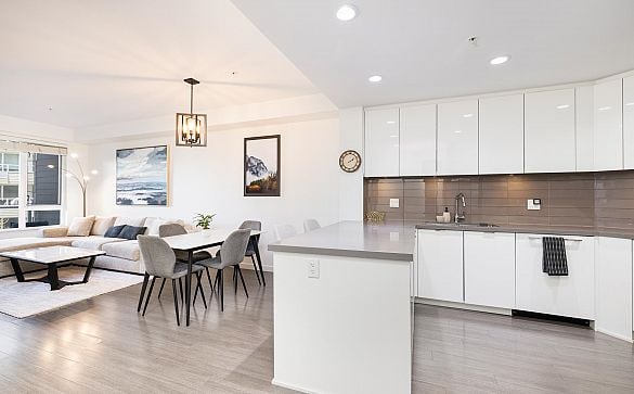 Sweeping water, Victoria Park, and Lions Gate view! This spacious 1BR condo has 678 sf with a bright living room that leads to a balcony with a south... Read More >