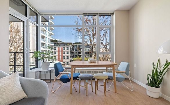 Top-floor home at Harbourgate in the heart of Lower Lonsdale. This two-bedroom, two-bath suite offers 975 sq. ft. with a practical layout, in-suite... Read More >