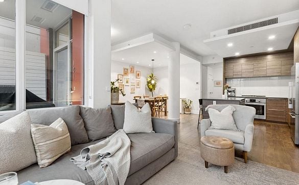 Massive, bright living and dining area in this spacious, almost brand-new 1-bedroom penthouse in North Vancouver. Features include laminate flooring... Read More >