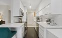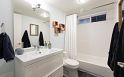 Tastefully updated top-floor 2-bdrm offering over 900 sq/ft of well-designed living space in popular Cedarbrooke Village. The partially open layout connects the kitchen, dining, & living areas, ideal for everyday living & entertaining. The kitchen features white cabinetry, quartz counters, subway tile backsplash, s/s appliances, double sink, & a breakfast bar. Painted white hardwood floors, pot lighting, updated windows, & sliding doors add to the airy, modern feel. Two generously sized bedrms are well separated for privacy and flexibility. The updated bathroom & in-suite washer/dryer add convenience. Includes one parking stall and storage locker, with heat and hot water incl in maint fees. Set on a 7-acre property w/ pool, playgrounds, & clubhouse, and ideally located near all amenities.