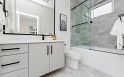 Location! Location! Location! A three level modern side by side half duplex with a very big side yard, front a yard and a paved patio offers a powder room a kitchen on main floor two bed rooms on a second floor having their own bath rooms. Second floor also offers laundry. The top floor offers a primary bedroom with balcony which offers a million dollar view of City, West Vancouver and mountains.