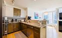 Beautifully updated 2-bedroom, 2-bathroom condo at "CLASSICO" featuring a solarium, flex space, and balcony. The remodeled kitchen includes expanded storage, sleek stone countertops, and stainless steel appliances. Bathrooms are elegantly renovated with white marble counters, flooring, and walls, plus a glass-enclosed shower with five showerheads! You'll find durable engineered bamboo flooring, a flex space with a built-in desk and storage discreetly tucked away, closet organizers, smoked glass doors for privacy while letting in natural light, and new lighting fixtures. Enjoy city, mountain, and some water views from the efficient, open floor plan. Pet & rental friendly. Tenanted property!