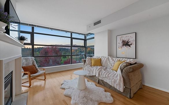 This bright 1-bedroom plus den, condo (approx. 590 sq ft) in Harbourside Park offers stunning views of the harbour and North Shore mountains. Located... Read More >