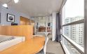 Ideal Pied-à-Terre at The Wall Centre - perfectly positioned in the vibrant heart of downtown Vancouver. This bright and surprisingly spacious studio features large floor to ceiling windows with peek-a-boo views of the mountains, water, courtyard gardens, and city skyline. Enjoy the comfort of this FULLY FURNISHED turnkey property with a full kitchen, private sleeping area, air conditioning, in-suite laundry and a parking stall. Whether you're seeking an investment, personal retreat in the city or a welcoming space for guests, residents have the option to access Sheraton Hotel's top-tier recreation facilities for a modest monthly fee. This pet-friendly, building is steps from shops, restaurants, theatres, transit, and just a short walk to Burrard SkyTrain Station.