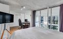 One of One opportunity at The Space Lofts. This floorplan is UNIQUE TO THE BUILDING! Fully renovated with warmth and character, this floorplan offers a 2-bedroom layout and a large kitchen. Dramatic double-height ceilings, polished concrete floors, and exposed concrete feature walls retain the loft's drama while the kitchen warms the space with walnut cabinetry, stone counters, mosaic backsplash, and full-sized appliances. Plenty of natural light from the triple window bank and South exposure. In-suite combined washer/dryer. 1 parking, 2 pets ok.
