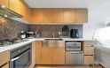 Luxury Georgia award winning concrete building by Solterra. NW facing with open city views, bright and spacious. Great layout with good sized bedroom. Den is big enough as occasion guest room. Beautiful solarium is great for flex/work space. Modern furnishing, wood cabinets, trendy back splash, gas cooktop, engineered wood floors, stainless steel appliances, in suite laundry. Secured building with concierge in the spacious lobby. Gym, lounge, playground etc. Sought after location, 10/10 walking score. Comes with 1 parking & locker.