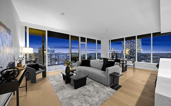 Stunning CITY & MOUNTAIN VIEWS from the 25th floor at Tate Downtown! BRIGHT & SPACIOUS 2 bed+den+solarium w/ floor-to-ceiling windows & no wasted... Read More >