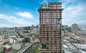 TOP FLOOR of the historic Woodwards! Sweeping views of City skyline, Ocean and North Shore mountains to enjoy from your patio that extends the length of the suite. Freshly painted and ready for a new owner, this urban condo offers over height polished concrete ceilings, giant floor to ceiling windows in the living and bedroom, h/w flooring throughout and enviable counter space that include a large quartz topped island. Large bathroom with separate shower and soaker tub, insuite laundry and California closets in the bedroom. Woodwards is famous for it's amenities and W shaped rooftop hot tub. Top of the line fitness centre, party room and working stations in a common area for work from home folks who like a change of scenery. Pleasure and EASY TO SHOW!