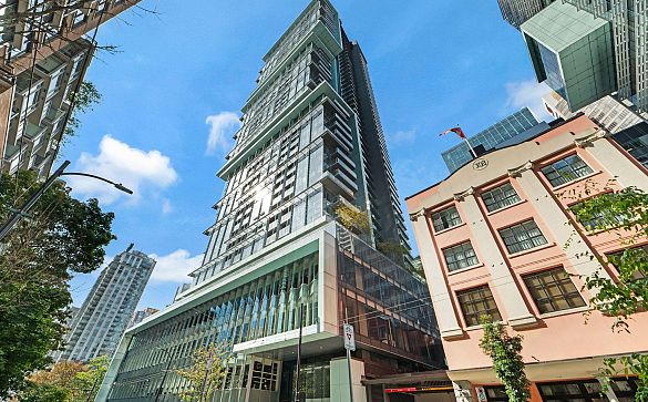 Top-floor 2 bed 1 bath at Paris Place with rare short-term rental potential! Located in the heart of International Village, steps to SkyTrain, Rogers... Read More >