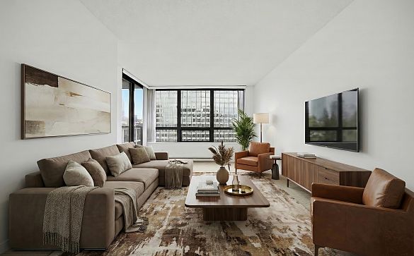 Bright corner 1-bedroom home featuring over-height ceilings and wall-to-wall windows that fill the space with natural light. Recently updated with... Read More >