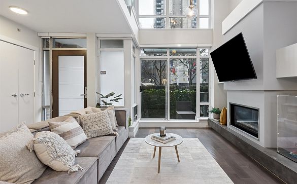 Two-level corner end-unit townhome in the heart of Downtown Vancouver, adjacent to Yaletown. Features include 11-ft ceilings, large windows, and... Read More >